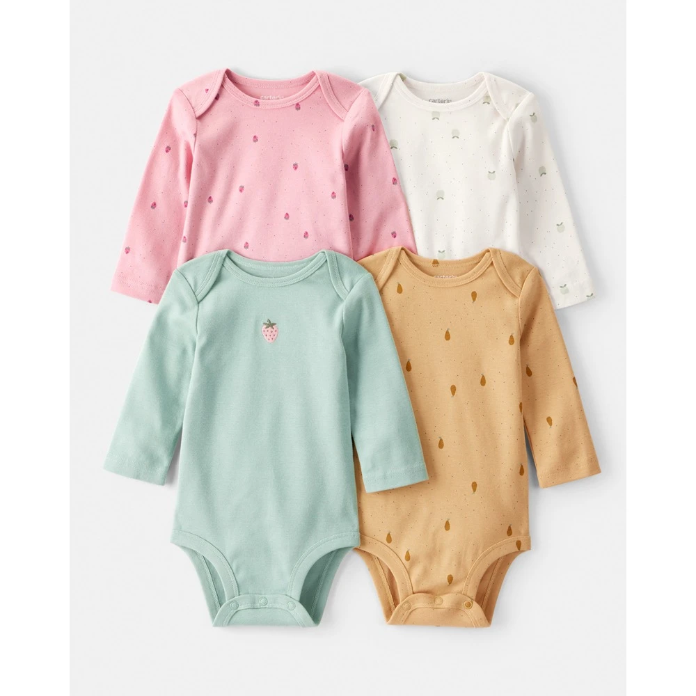 El Carter's Pack 4 Bodies Mangas Largas ofrece comodidad y practicidad. Confeccionados con 100% algodón, estos bodies son ideales para el cuidado diario de su bebé. Los hombros superpuestos facilitan el cambio, mientras que los broches super resistentes soportan múltiples lavados. Fáciles de lavar en lavarropas, son la opción perfecta para padres buscando conveniencia y calidad.