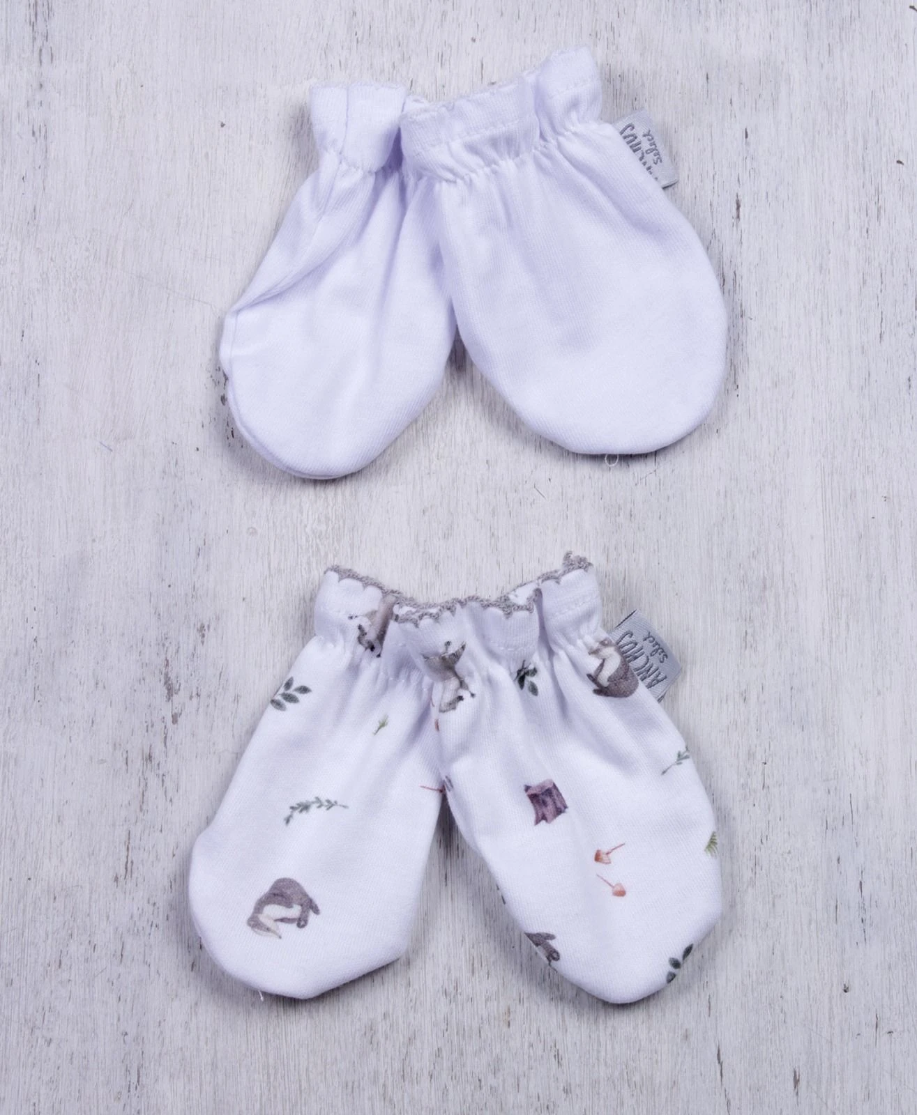 Manopas de algodón para recién nacidos, confeccionadas con materiales suaves y delicados para el cuidado de la piel del bebé. Ideales para mantener las manos del recién nacido calientes y protegidas.