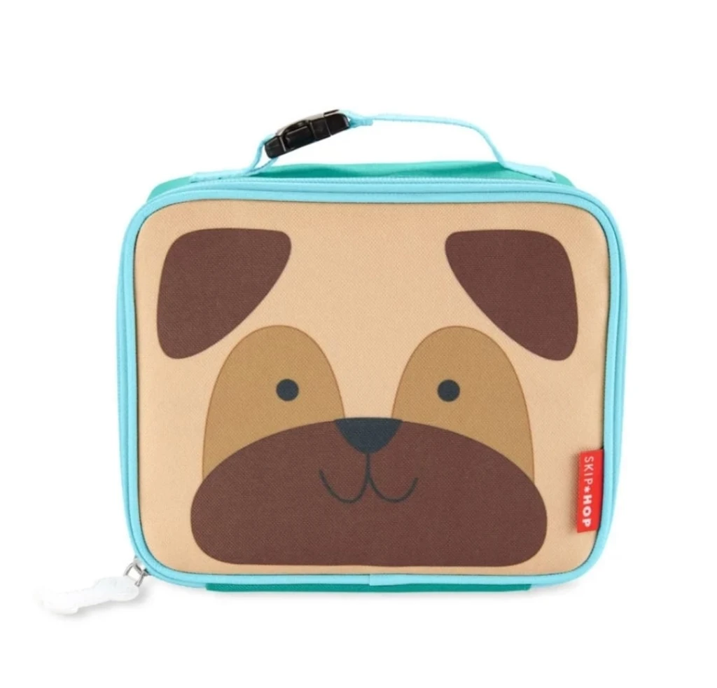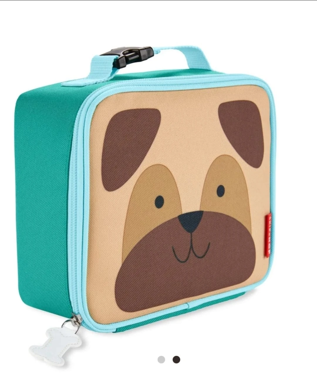 La Skip Hop Lunchera perro cuenta con un interior espacioso y aislante para mantener la comida y las bebidas frescas. Su asa con clip permite sujetarla a mochilas o bolsas, y cuenta con un bolsillo de malla adicional para almacenar utensilios.